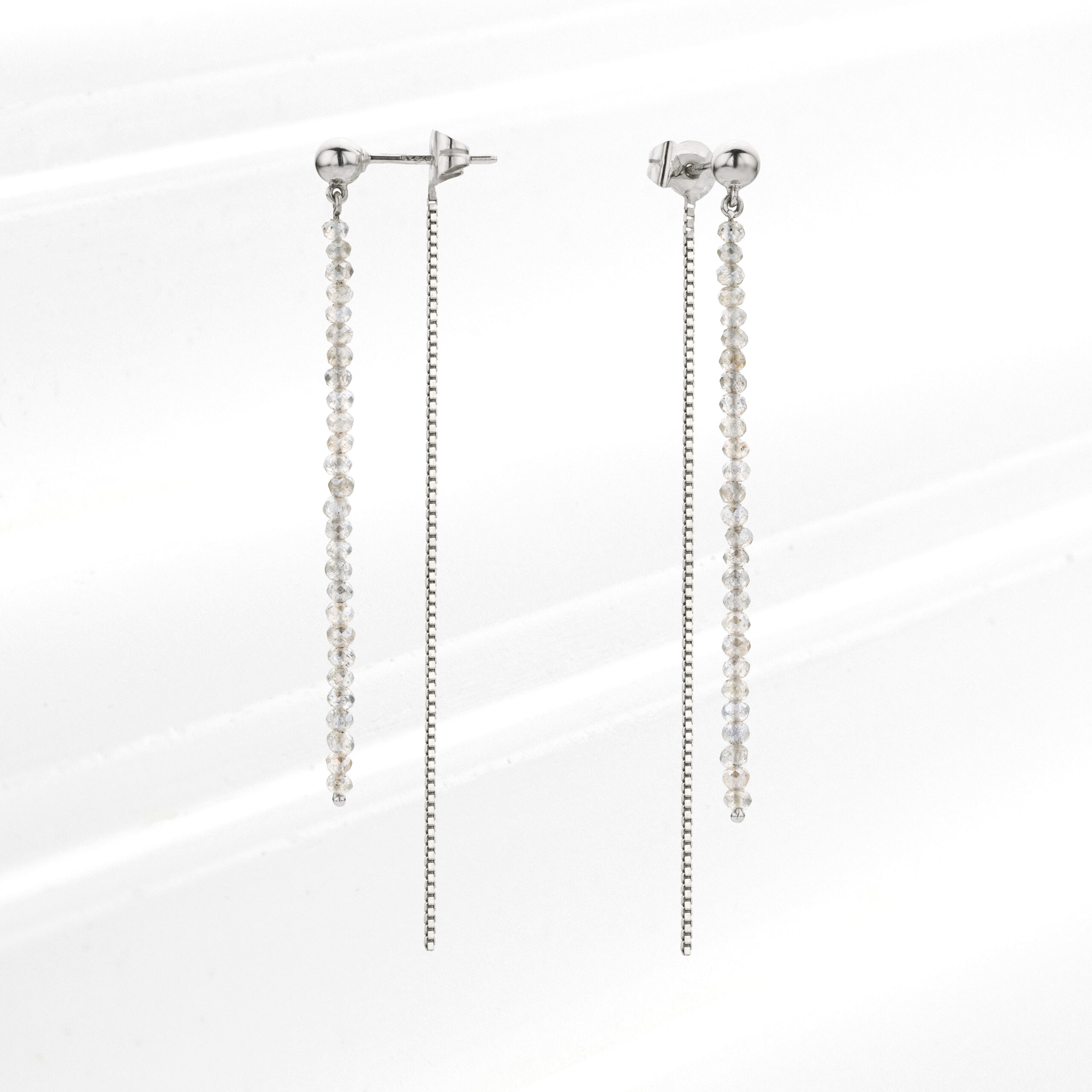 • Une paire de boucles d’oreilles en or blanc 18 carats sertie de labradorithes.