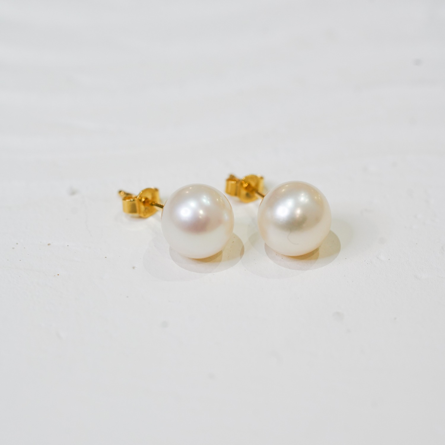 - • Une paire de boucles d’oreilles en or jaune 18 carats sertie de perles de culture blanches rondes.