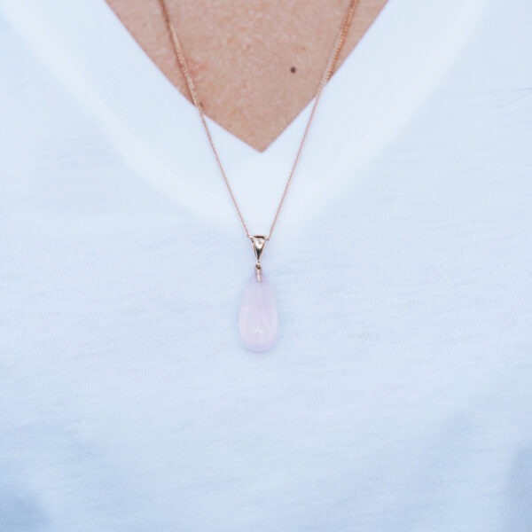 • Un collier en or rose 18 carats serti d’un quartz rose.
